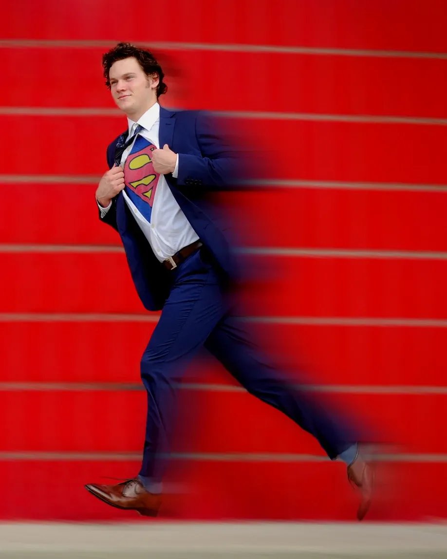 I’ve always been a huge DC fan — especially Superman. During my session planning, Idaho Photography Studios suggested we have some fun with it, and I’m so glad they did. One of my favorite shots ended up being me revealing the Superman logo under my shirt — like Clark Kent in mid-transformation. It was the perfect way to cap off my senior portraits. Thanks for letting me be a little bold, a little geeky, and totally myself!”